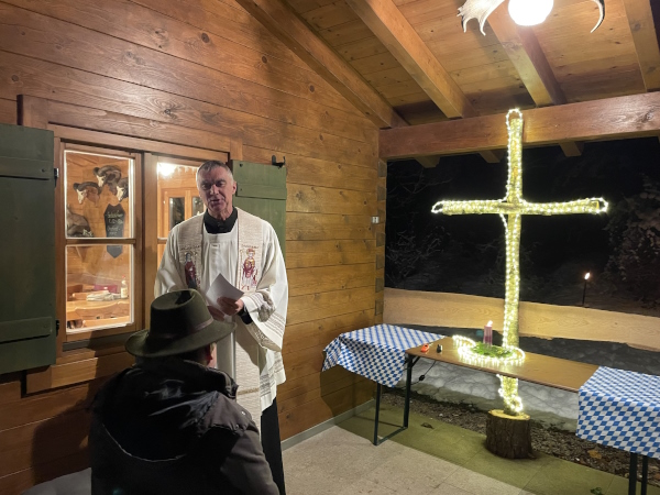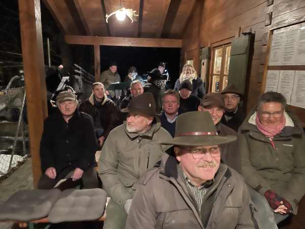 1. Vorstand Helmut Reil und Stadtpfarrer Josef Funk hielten berührende Ansprachen; Mitglieder beteten die Lesung und Fürbitten. Musikalisch wurde die Andacht von den Jagdhornbläsern umrahmt. Mit einer gemeinsamen Einkehr in die Schießstandhütte wurde die sehr würdevolle Andacht abgeschlossen. Bild und Text: Wolfgang Krippl |