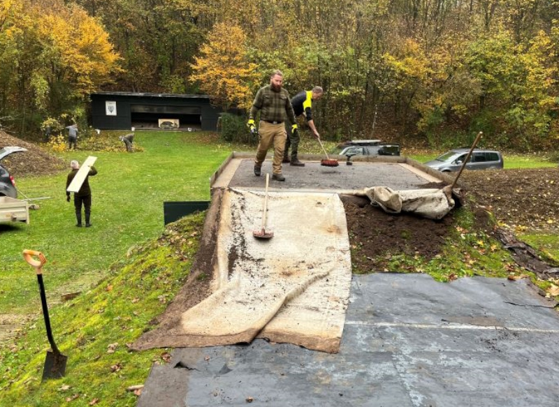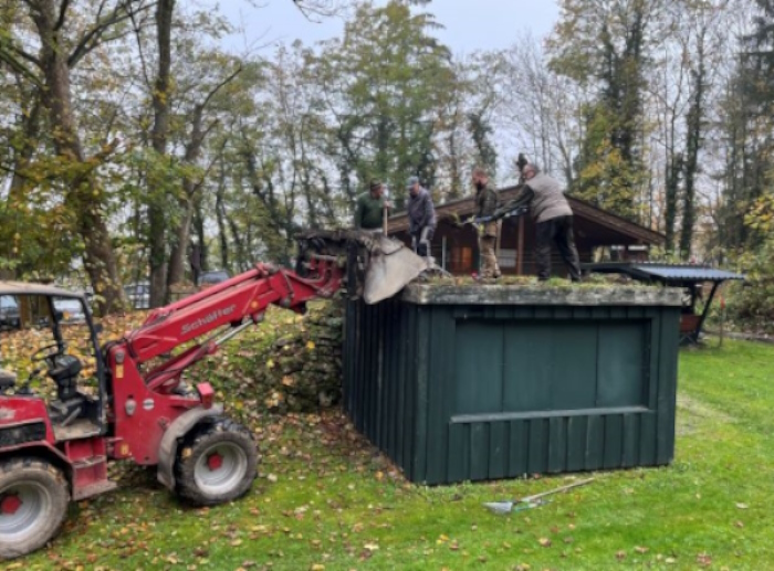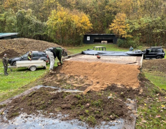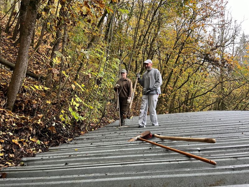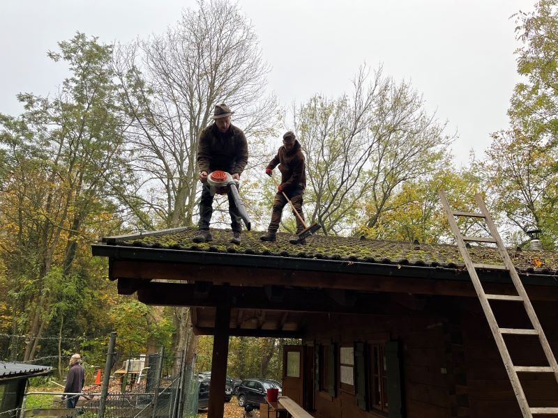 schließlich sanieren des Daches der Wurftaubeneinrichtung.