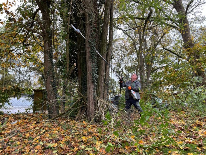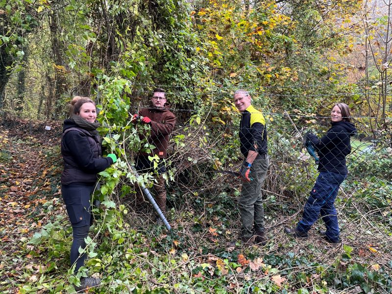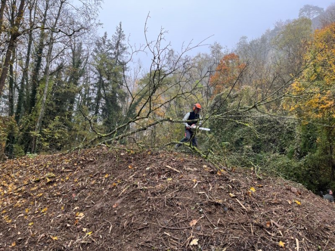 viel zu tun: freischneiden des Sicherheitszaunes, freischneiden