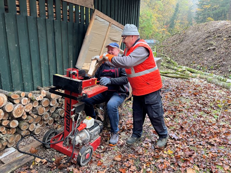 Gestrüpp, aufarbeiten umgestürzter und dürrer Bäume, spalten von