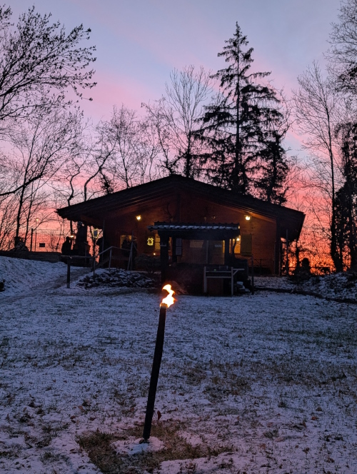 Hütte zu einem gemütlichen Beisammensein zusammen. Bei warmen